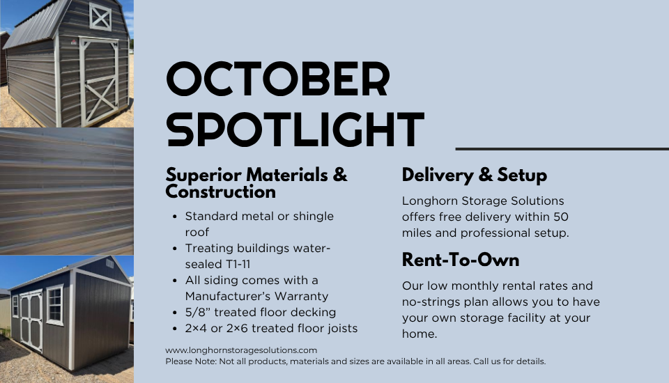 At Longhorn Storage Solutions, customer satisfaction is our highest priority. Our knowledgeable and friendly team is dedicated to helping you find the perfect products for your needs. We’re here to answer your questions and guide you through every step of your purchase.